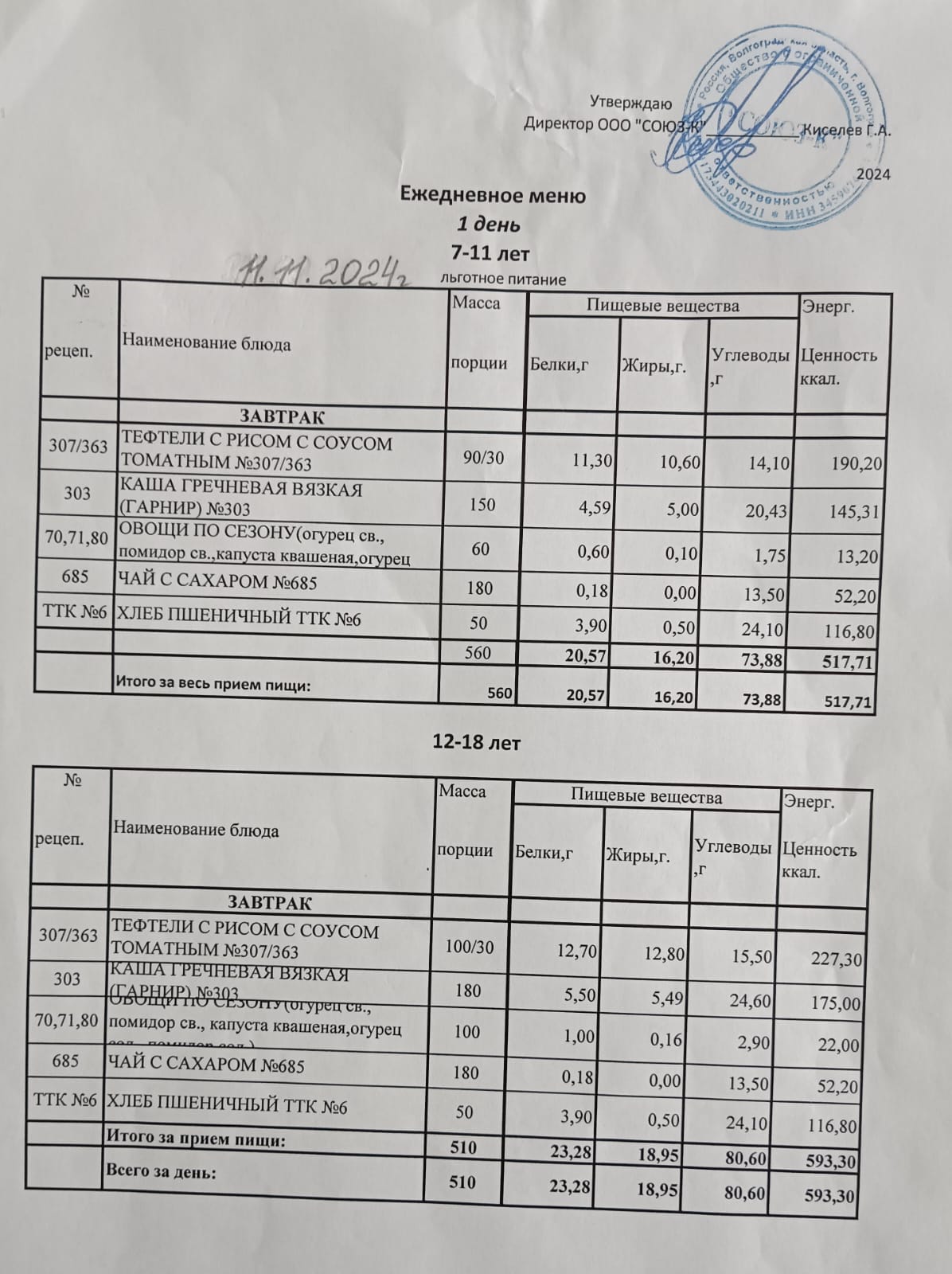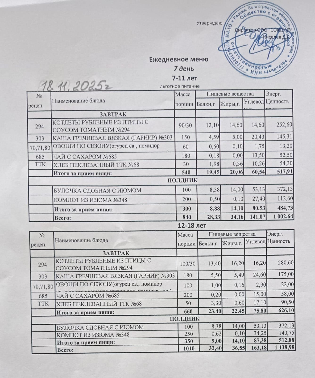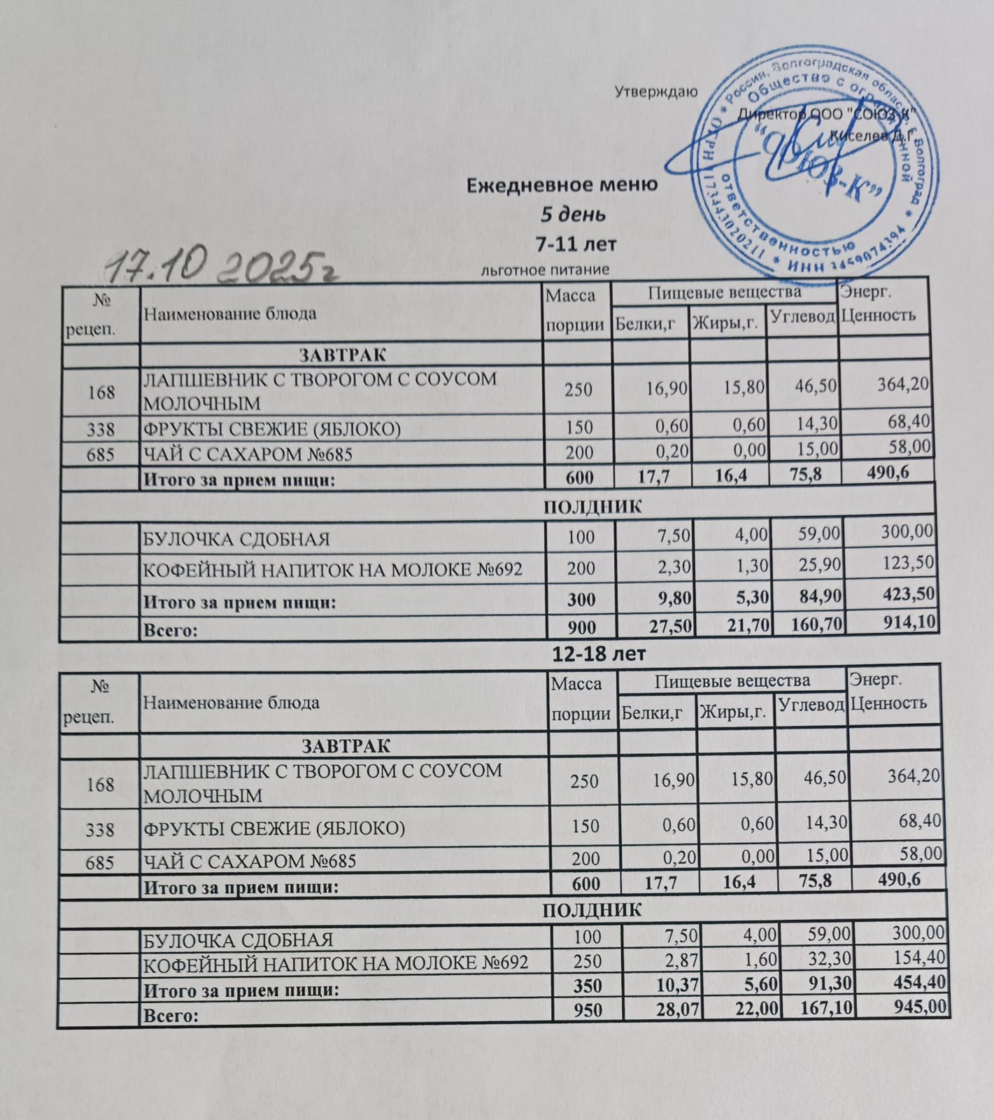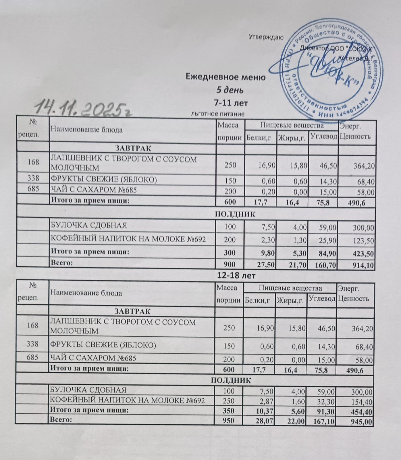 11.12.2025 г. Меню - 4 день - Фото (завтрак) (полдник)